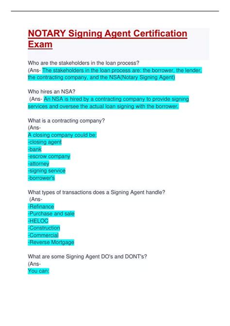 Read NOTARY SIGNING AGENT CERTIFICATION EXAM ANSWERS Hardcover ManyBooks